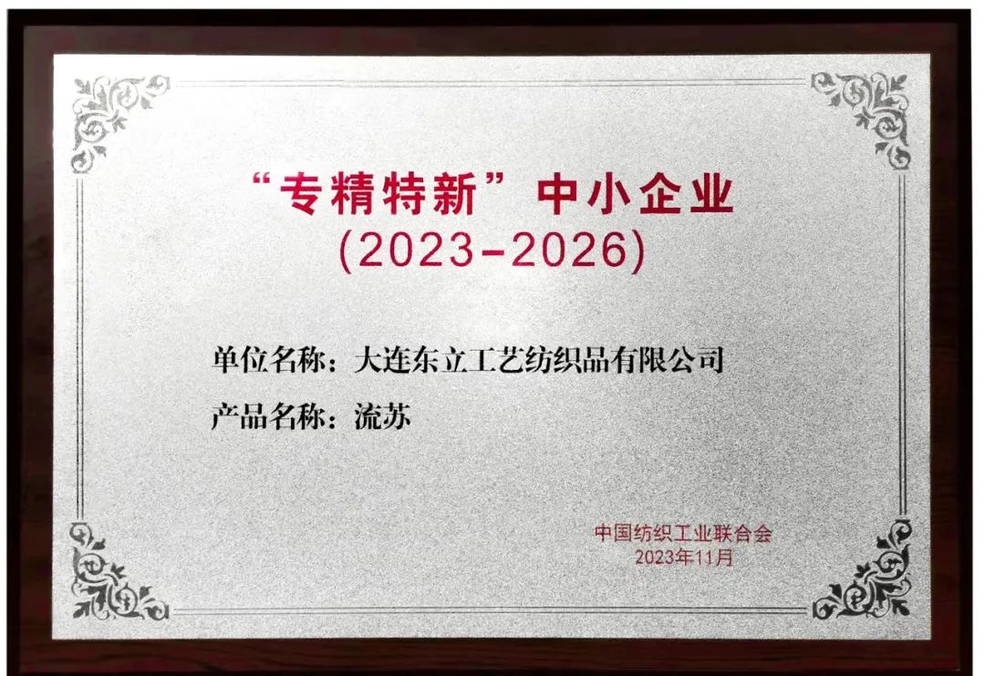 “2023年度十大類紡織創(chuàng)新產(chǎn)品”和2023-2026“專精特新”中小企業(yè)榮譽(yù)稱號。